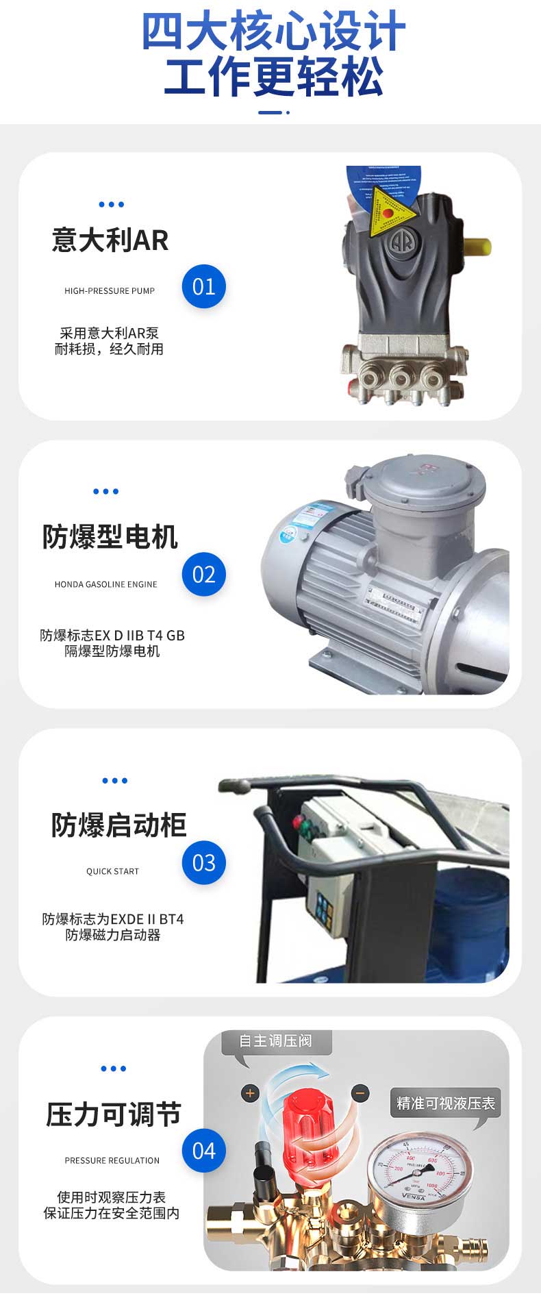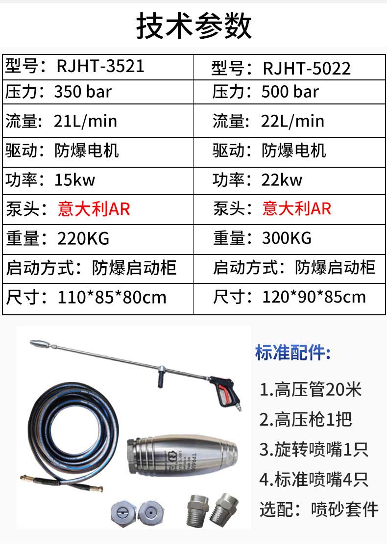 RJHT-3521型高壓清洗機,采用意大利進口高壓泵,壓力調節(jié)裝置、壓力表和過濾器等多種安全防護裝置,具有安全性高,使用操作穩(wěn)定等優(yōu)點。