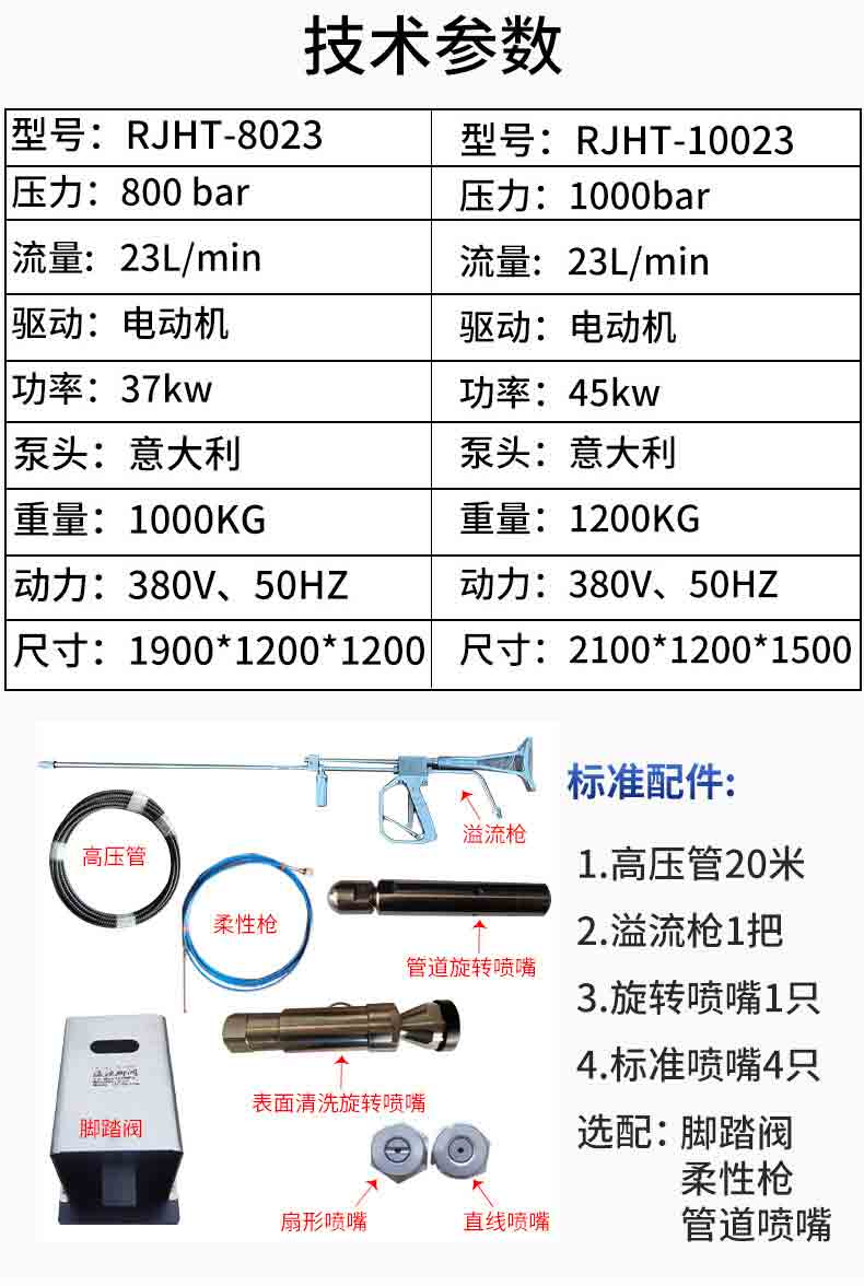 RJHT-8023型超高壓清洗機(jī),采用意大利進(jìn)口高壓泵,壓力調(diào)節(jié)裝置、安全控制閥、壓力表和過濾器等多種安全防護(hù)裝置,具有安全性高,使用操作穩(wěn)定等優(yōu)點(diǎn)。